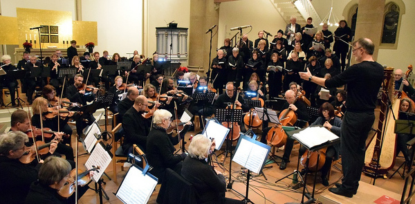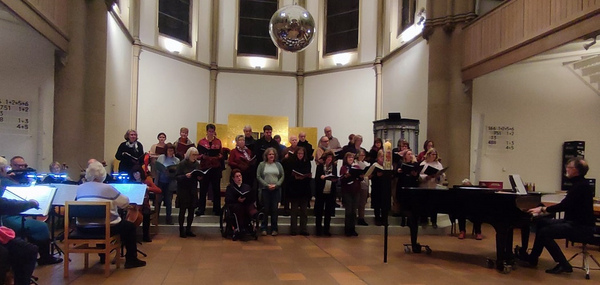...die Kreuzkantorei unter Leitung von Kreiskantor Wolfgang Flunkert zusammen mit dem Kammrorchester unter Leitung von Gisela Röbbelen inder Herer Kreuzkirche. Hier standen das Wehnachtsoratorium von Camille Saint-Saëns, die Weihnachtskantate "Der Stern" von Joseph Rheinberger sowie "Die Geburt Christi" aus dem Oratorium "Christus" von Felix Mendelssohn Bartholdy auf dem Programm. Die rund 300 Besucherinnen und Besucher in der ausverkauften Kreuzkirche bedachten die Auführenden mit stehenden Ovationen. Zum guten Schluss gratulierte Pfarrer i.R. Wolfgang Henke Kantor Flunkert zu seinem 20-jährigen Dienstjubiläum. "Wir haben damals nach dem Weggang von Detlef Renneberg jmanden gesucht, der in dessen Fußstapfen tritt", so Henke. "Du bist nicht in seine Fußstapfen getreten, sondern hast eigene gesetzt." AR