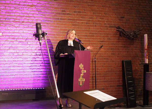 Superintendentin Claudia Reifenberger stellte mit Blick auf das besondere Profil von Bongers‘ Pfarrstelle, darin missionarisch zu wirken, ein Wort aus dem 2. Samuelbuch in den Mittelpunkt ihrer Ansprache: „In jener Nacht aber erging das Wort des HERRN an Nathan: Geh, und sage zu meinem Diener, zu David: So spricht der HERR: Du willst mir ein Haus bauen, damit ich darin wohne? Ich habe nicht in einem Haus gewohnt seit dem Tag, an dem ich die Israeliten aus Ägypten heraufgeführt habe, bis auf den heutigen Tag, ich bin umhergezogen in einem Zelt als Wohnung.“ (2.Sam 7,4-6)