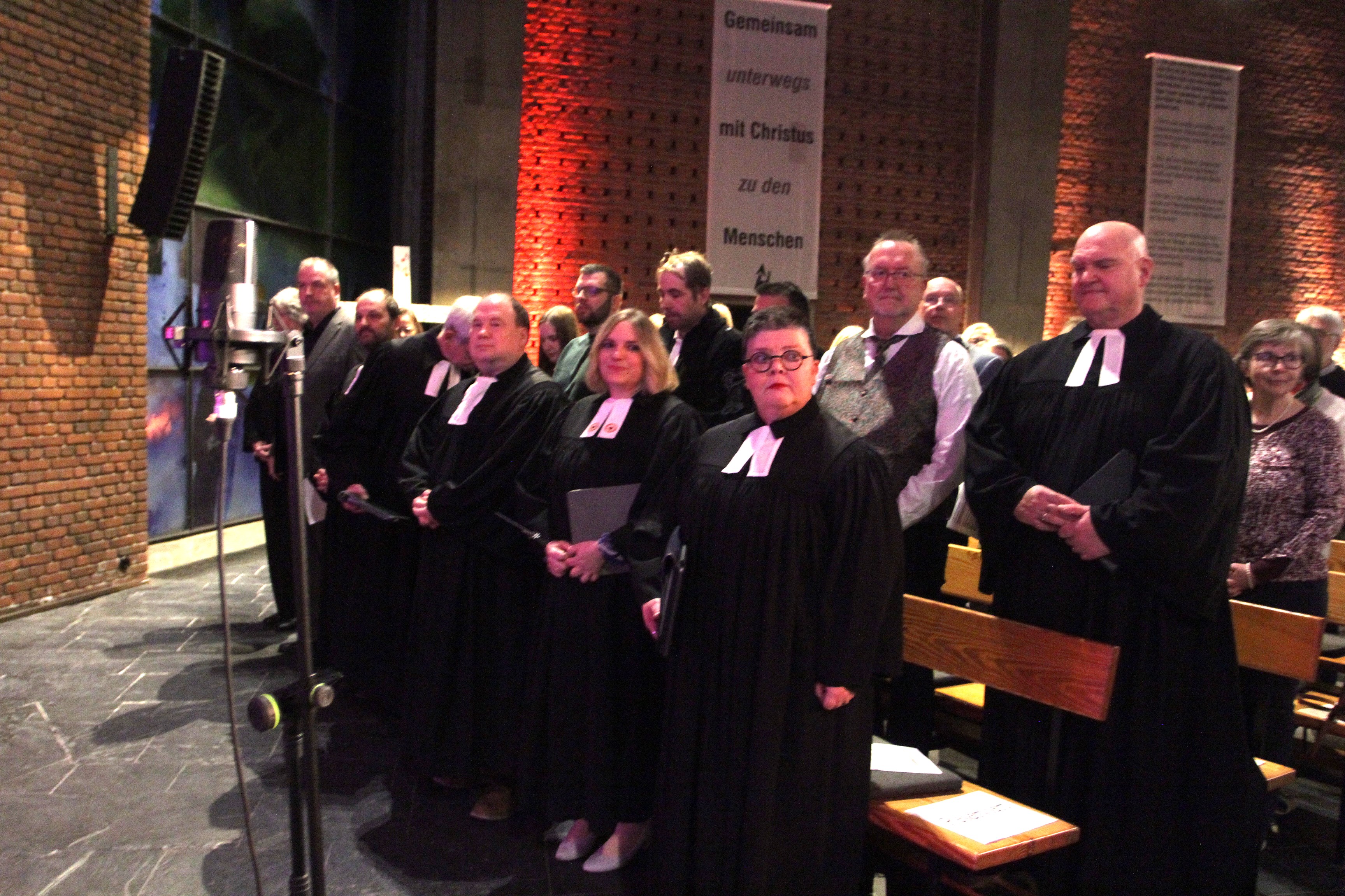 Gott lasse sich nicht festlegen auf Gebäude. „Wir müssen uns von Gebäuden trennen – vielleicht nicht nur aus finanziellen, noch nötiger vielleicht aus theologischen Gründen“, sagte sie. „Es geht weniger darum, die Türen unserer Kirchen und Gemeindehäuser offenzuhalten, um abzuwarten wer kommt (und wer nicht), sondern vielmehr hinauszugehen an die Orte, an denen die Menschen leben, an die Sie mit der Kirchengemeinde gewiesen sind.“ Sie machte Denise Bongers Mut, „hinauszugehen an die Orte, an denen die Menschen leben, an die Sie mit der Kirchengemeinde gewiesen sind; Orte, an denen es möglich ist, dem umherziehenden Gott zu begegnen, Orte, die dadurch zur Kirche werden.“ Nach ihrer Einführung erhielt sie Zuspruch der Gemeinde und persönliche Segensworten von Kolleginnen, Kollegen und Presbyteriumsmitgliedern.