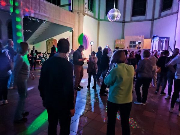 Nach dem Gottesdienst und einer längeren Umbauphase startete um 21 Uhr eine große Jubiläumsparty. Die Kirche erstrahlte in buntem Licht, das eine Discokugel in alle Richtungen streute. DJ Markus Misir legte auf, zahlreiche Jubiläumsgäste tanzten im freigeräumten Kirchenschiff, an der Bar wurden sie von Kantor Flunkert mit Cocktails oder Softdrinks bedient. Bis in die Nacht dauerte die Feier, von der sich nicht wenige eine Wiederholung wünschten – und das nicht erst in 150 Jahren. AR