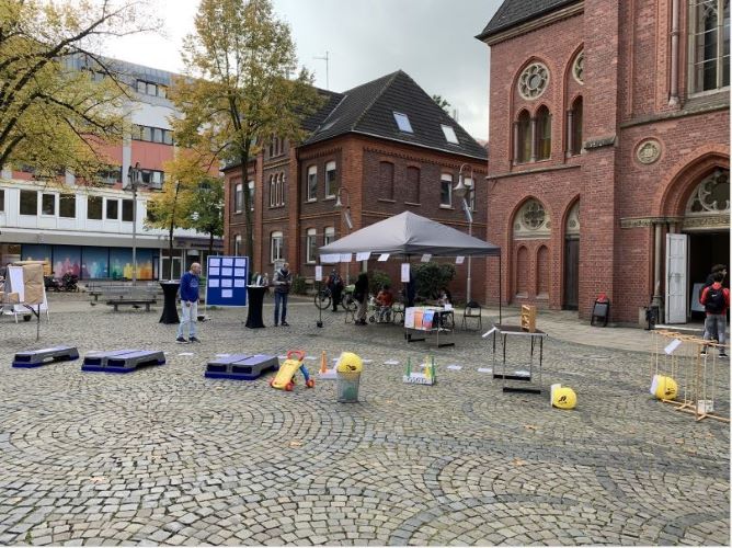 - Ein Mitmachparcours, der die Arbeitsbedingungen eines Paketzustellers erfahrbar machen sollte, wurde zum Welttag für menschenwürdige Arbeit in der Wanner Fußgängerzone aufgebaut.