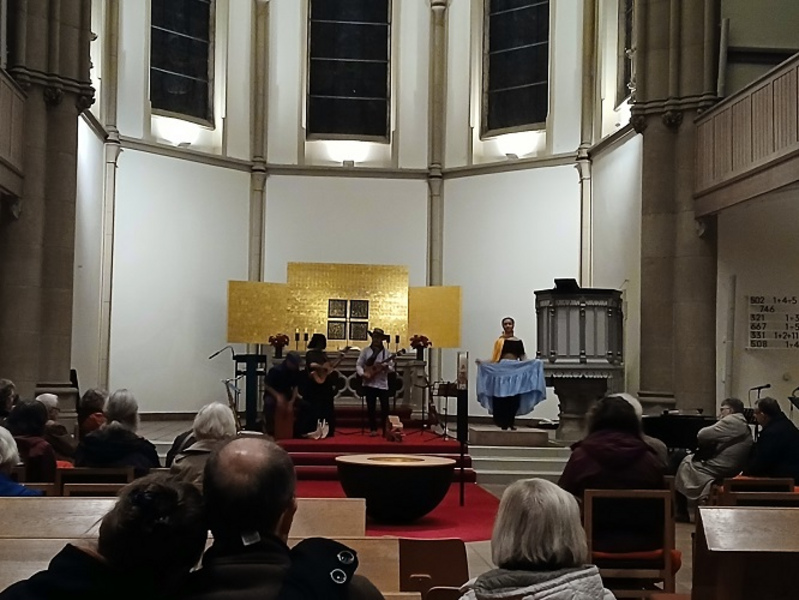 Konzert und Vortrag wurden von der Fachstelle Eine Welt des Kirchenkreises Herne in Kooperation mit der Kirchengemeinde Haranni und der Evangelischen Erwachsenenbildung veranstaltet. Das nächste Konzert der Reihe „Klangkosmos Weltmusik“ findet am Samstag, 22. November, um 16.30 Uhr in der Christuskirche an der Wiescherstraße 120 mit einem Programm aus Belgien statt. MH