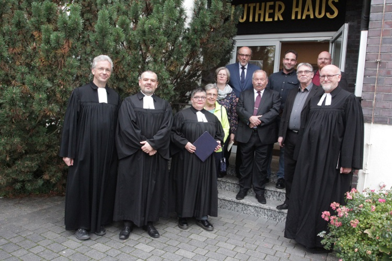 Von links: Pfarrer Jens-Christian Nehme, Pfarrer Björn Knemeyer, Superintendentin Claudia Reifenberger, die Presbyterinnen und Presbyter Christa Blatt, Susanne Henneke, Jürgen Winkelmann, Klaus-Peter Wilhelm, Thorben Schönweitz, Rainer Gießmann und Jens Beuermann sowie Pfarrer Jörg-Martin Höner.