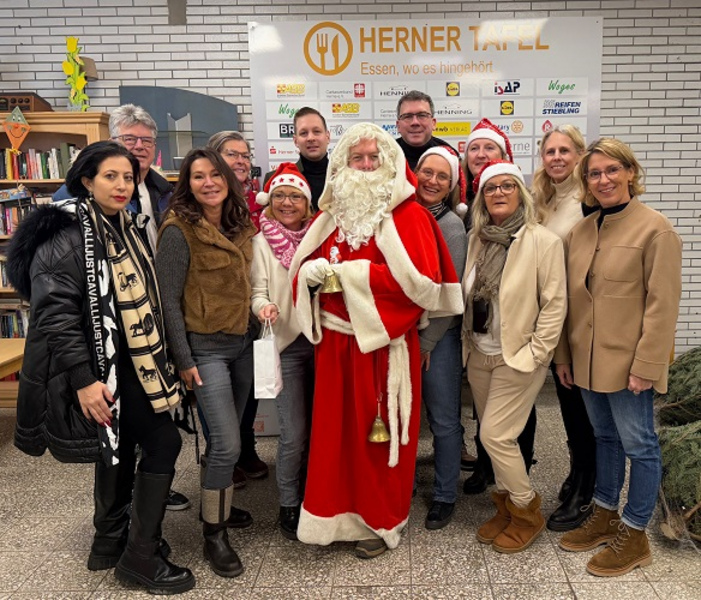 Herne. Große Freude bei der Herner Tafel: Der Nikolaus persönlich verteilte am 6. Dezember gemeinsam mit Ruhrwerk-Aktiven und zahlreichen Unterstützern Weihnachtstüten an die Kundinnen und Kunden der Herner Tafel. Die Freude der Kinder und die Dankbarkeit der Beschenkten machten diesen Tag zu einem besonderen Moment in der Vorweihnachtszeit. Der Verein Ruhrwerk war mit sieben engagierten Frauen plus Ehemännern vor Ort. Einer von ihnen, der Versicherungsunternehmer Lutz Schewe, verteilte im Nikolaus-Kostüm mit Rauschebart nicht nur Leckereien an die Kleinen. Er wurde auch immer wieder um ein Selfie gebeten.